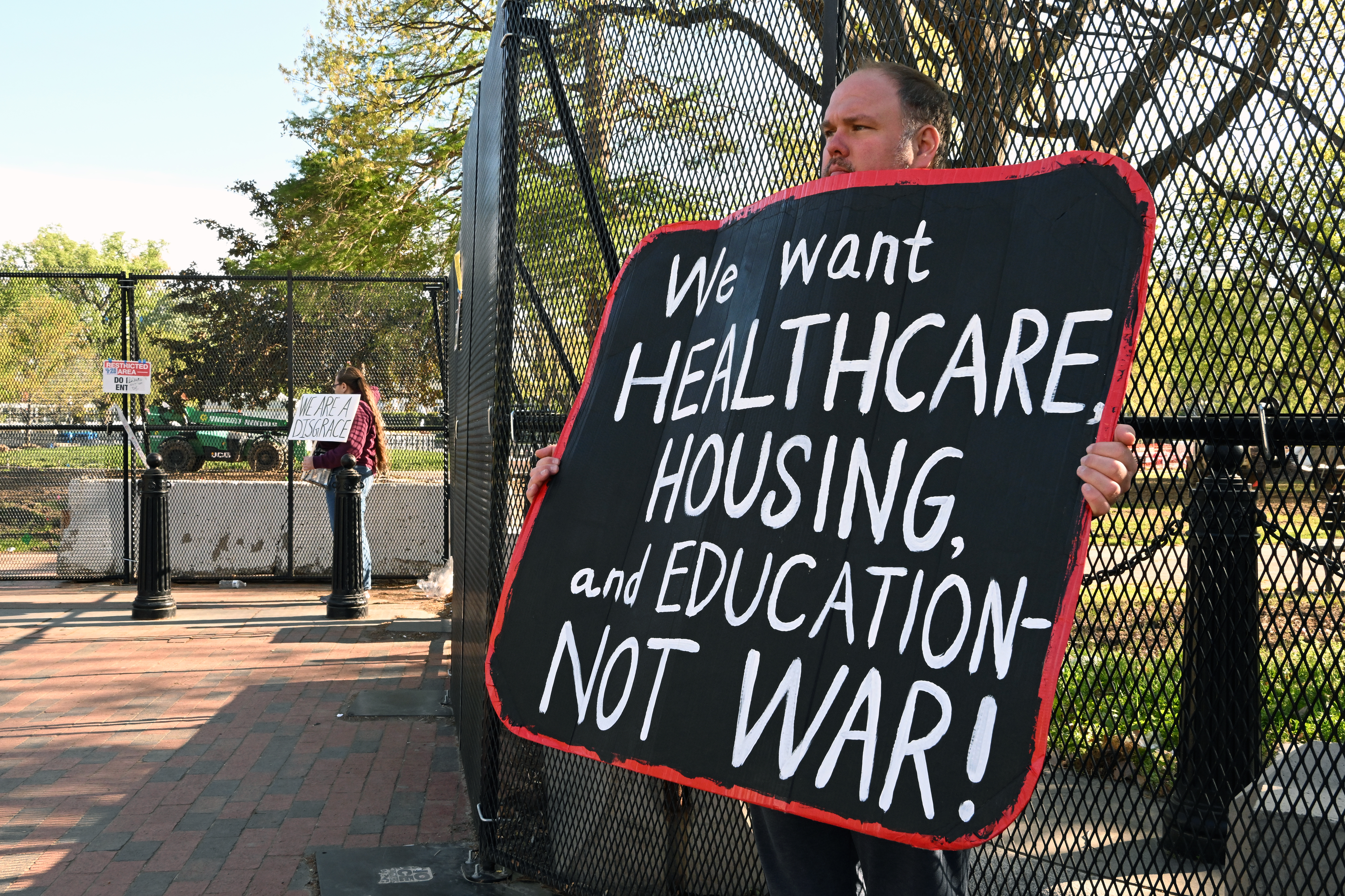 4月7日,人们在美国首都华盛顿的白宫前示威。新华社 发